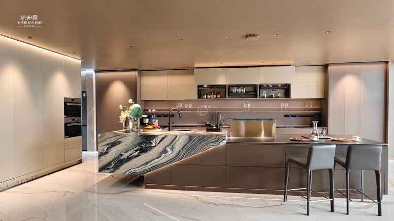 法迪奥不锈钢橱柜【铂爵】系列超越了材料应用的表面创新,实现了“材质、工艺、美学、环保”四位一体的系统化产品哲学。