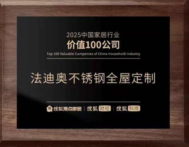 近日,中国家居家装行业年度权威榜单相继揭晓,法迪奥不锈钢全屋定制,凭借穿越周期的亮眼表现与深远行业影响,入选2025年度中国家居冠军榜「匠心质造品牌」、「2025中国家居行业价值100公司」。