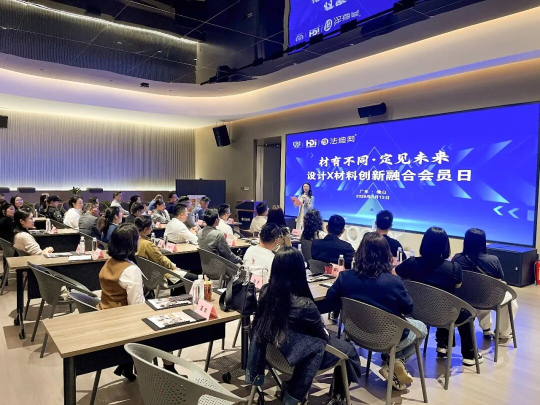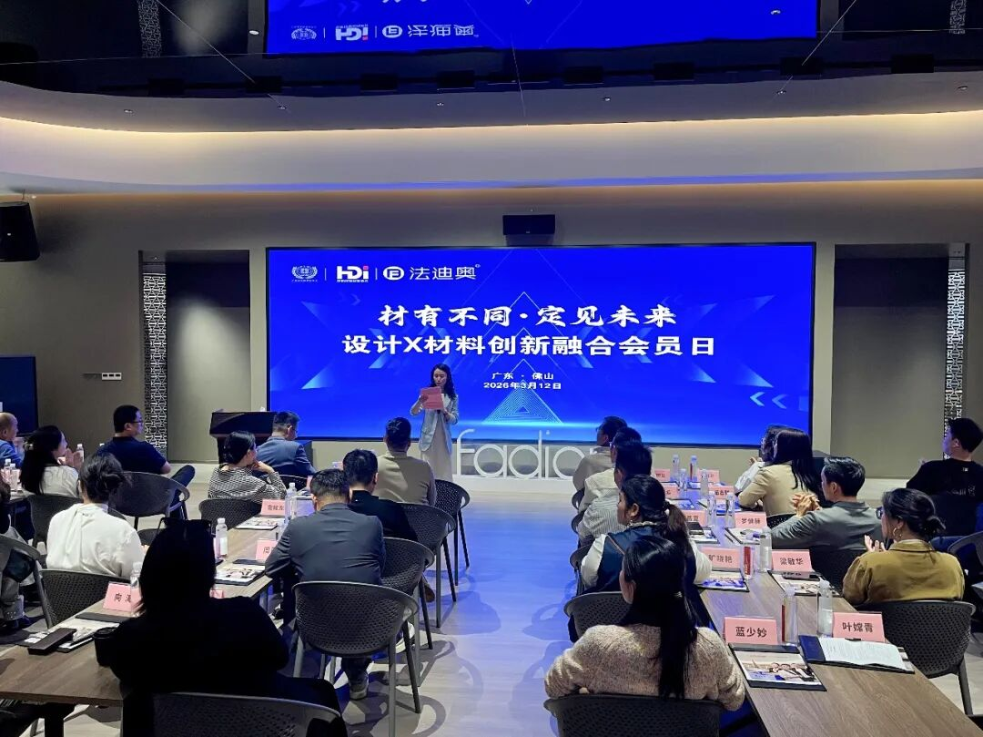 3月12日,由广东省家居建材商会和广州市花都区建筑装饰协会联合举办的“材有不同·定见未来——设计X材料创新融合会员日”在法迪奥新总部数智化基地成功举办。40多位设计师与行业精英齐聚一堂,共同探讨设计与材料的交互与融合。